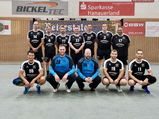 Hintere Reihe v.l.: Benjamin Geibel (Spielertrainer), Stefan Weger, Dennis Clemens, Florian Trinkaus, Christoph Schneider, Jannis Böttcher, Sven Urban (Spielertrainer)